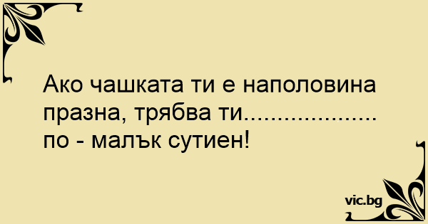 Ако чашката ти е наполовина празна, трябва ти.................... по - малък сутиен!