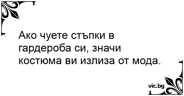 Ако чуете стъпки в гардероба си, значи костюма ви излиза от мода.