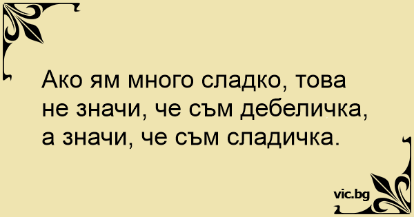 Ако ям много сладко, това не значи, че съм дебеличка, а значи, че съм сладичка.