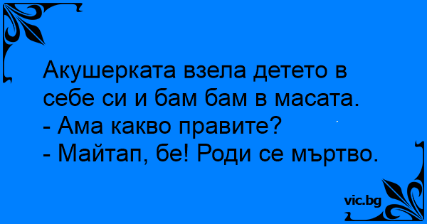• Вицове от Facebook от нашата страница https://www.facebook.com/www.vic.bg