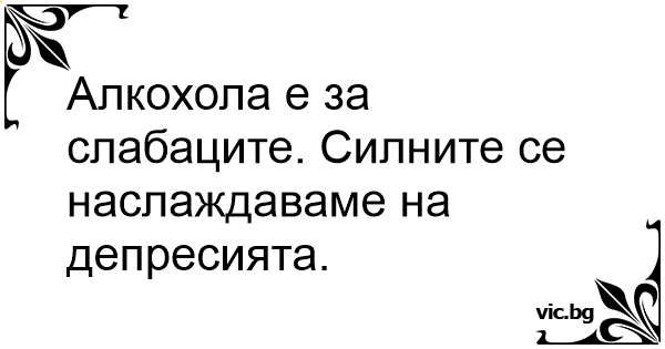 Алкохола е за слабаците. Силните се наслаждаваме на депресията.