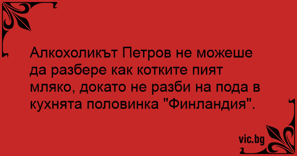 Алкохоликът Петров не можеше да разбере как котките пият мляко, докато не разби на пода в кухнята половинка "Финландия".