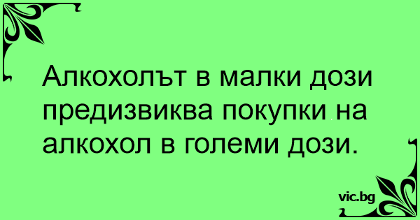 Алкохолът в малки дози предизвиква покупки на алкохол в големи дози.
