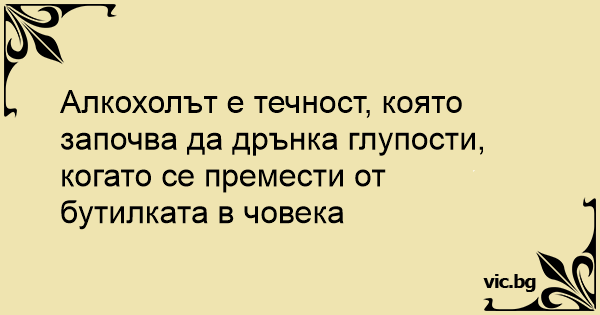 Алкохолът е течност, която започва да дрънка глупости, когато се премести от бутилката в човека