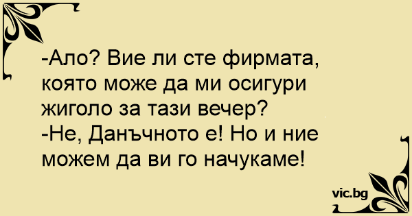 -Ало? Вие ли сте фирмата, която може да ми осигури жигoлo за тази вечер?