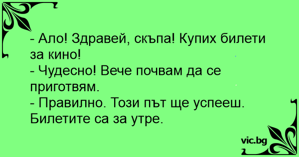 - Ало! Здравей, скъпа! Купих билети за кино!