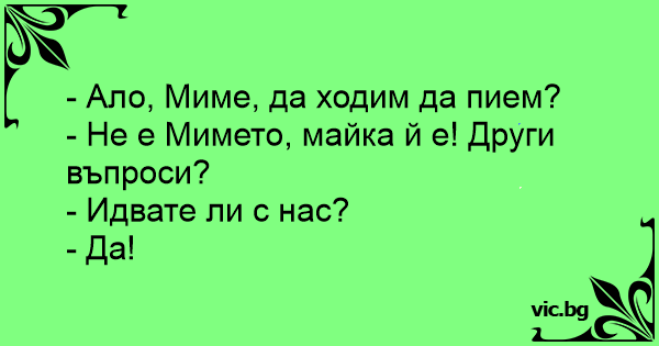 - Ало, Миме, да ходим да пием?