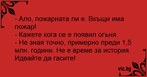 - Ало, пожарната ли е. Вкъщи има пожар!