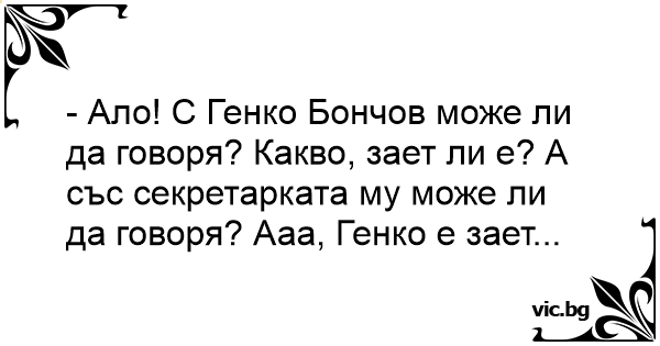 - Ало! С Генко Бончов може ли да говоря? Какво, зает ли е? А със секретарката му може ли да говоря? Ааа, Генко е зает...
