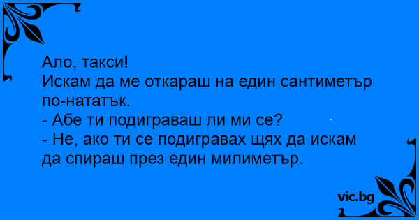 • Вицове от Facebook от нашата страница https://www.facebook.com/www.vic.bg