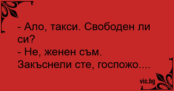 - Ало, такси. Свободен ли си?