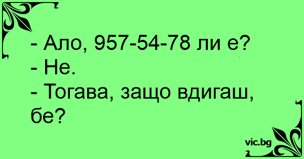 - Ало, 957-54-78 ли е? -...