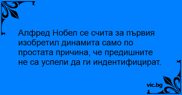 Алфред Нобел се счита за първия изобретил динамита само по простата причина, че предишните не са успели да ги индентифицират.