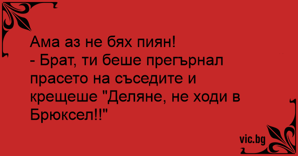 - Брат, ти беше прегърнал прасето на съседите и крещеше "Деляне, не ходи в Брюксел!!"