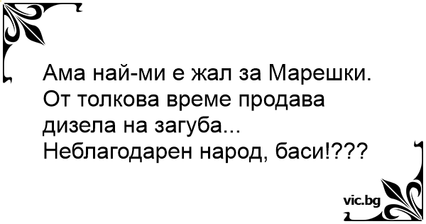 Ама най-ми е жал за Марешки. От толкова време продава дизела на загуба...