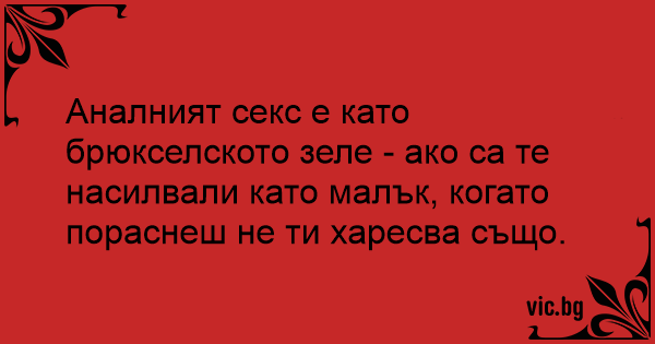 Aнaлнияt cekc е като брюкселското зеле - ако са те насилвали като малък, когато пораснеш не ти харесва също.