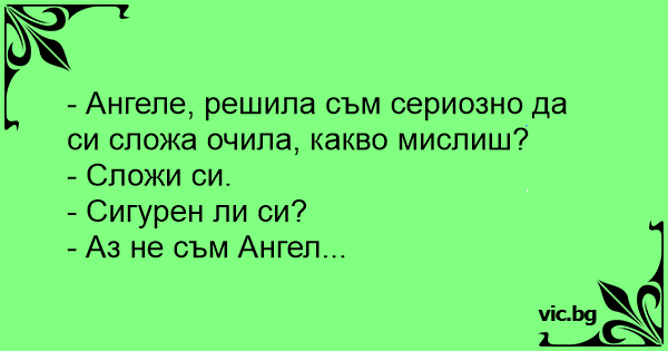 - Ангеле, решила съм сериозно да си сложа очила, какво мислиш?