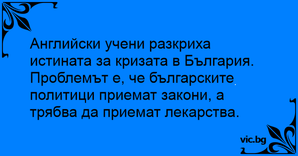 Проблемът е, че българските политици приемат закони, а трябва да приемат лекарства.