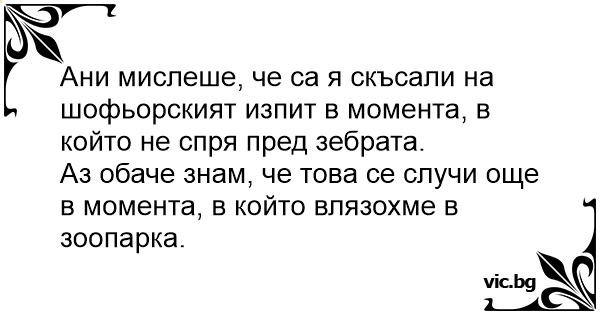 Ани мислеше, че са я скъсали на шофьорският изпит в момента, в който не спря пред зебрата.