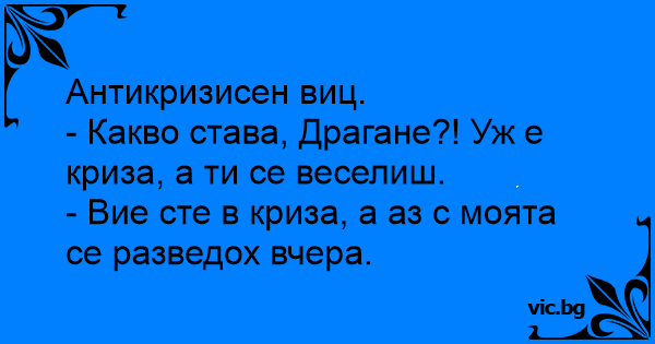 - Вие сте в криза, а аз с моята се разведох вчера.