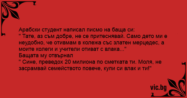 Арабски студент написал писмо на баща си: