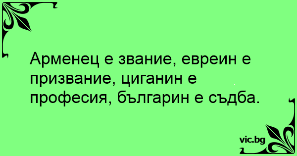 Арменец е звание, евреин е призвание, циганин е професия, българин е съдба.