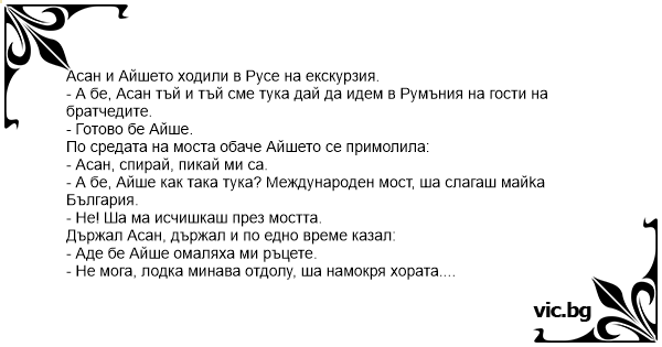 - А бе, Асан тъй и тъй сме тука дай да идем в Румъния на гости на братчедите.