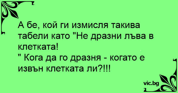А бе, кой ги измисля такива табели като "Не дразни лъва в клетката!