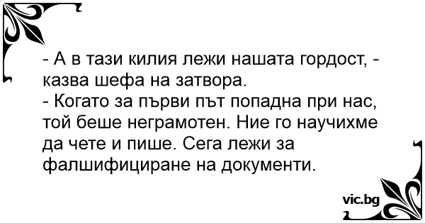 - А в тази килия лежи нашата гордост, - казва шефа на затвора.