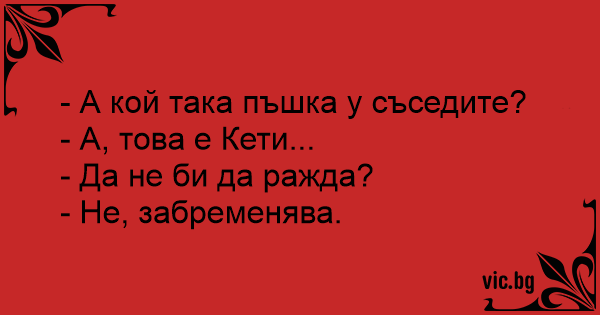 - А кой така пъшка у съседите?