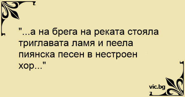 "...а на брега на реката стояла триглавата ламя и пеела пиянска песен в нестроен хор..."
