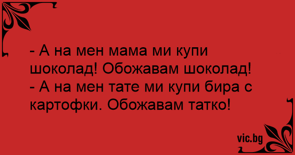 - А на мен тате ми купи бира с картофки. Обожавам татко!