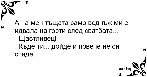 А на мен тъщата само веднъж ми е идвала на гости след сватбата...