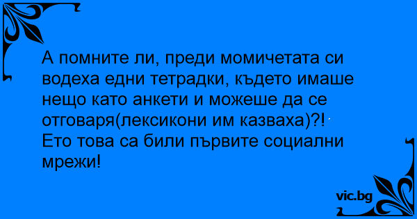 • Вицове от Facebook от нашата страница https://www.facebook.com/www.vic.bg