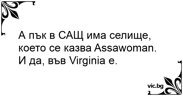 А пък в САЩ има селище, което се казва Assawoman. И да, във Virginia e.