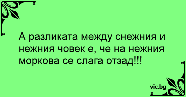 А разликата между снежния и нежния човек е, че на нежния моркова се слага отзад!!!