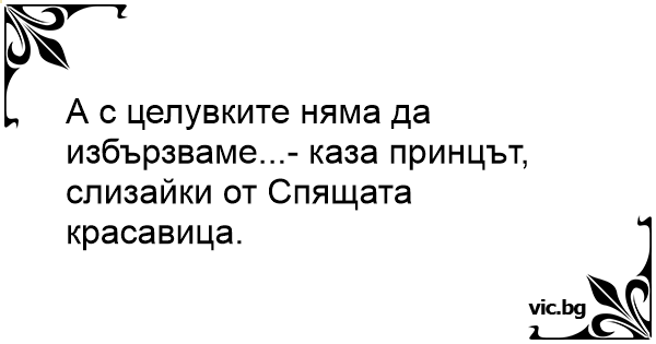 А с целувките няма да избързваме...- каза принцът, слизайки от Спящата красавица.