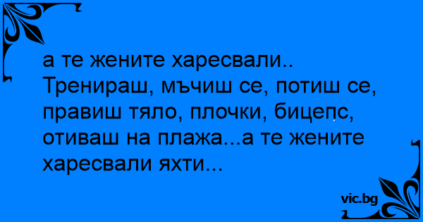 Тренираш, мъчиш се, потиш се, правиш тяло, плочки, бицепс, отиваш на плажа...а те жените харесвали яхти...