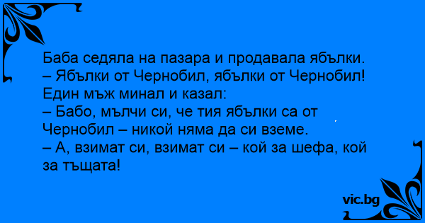– Ябълки от Чернобил, ябълки от Чернобил! Един мъж минал и казал: