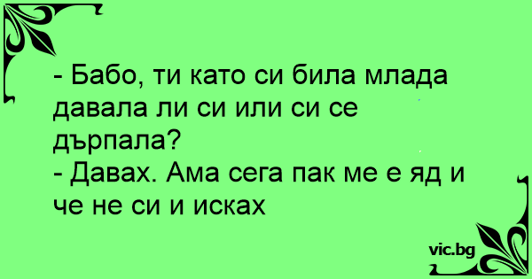 - Бабо, ти като си била млада давала ли си или си се дърпала?
