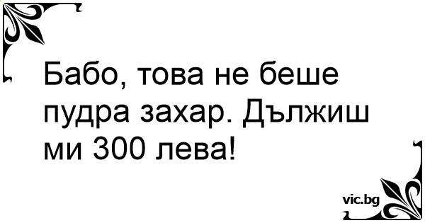 Бабо, това не беше пудра захар. Дължиш ми 300 лева!