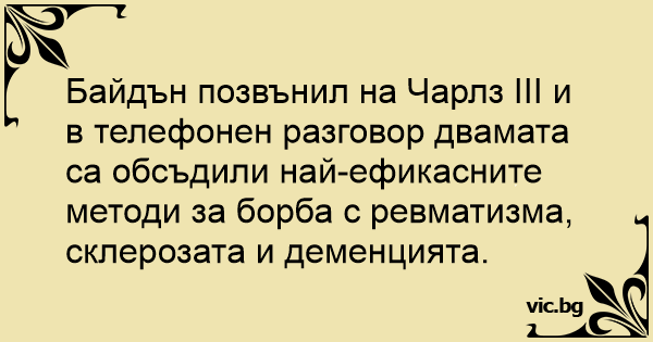 Байдън позвънил на Чарлз III и в телефонен разговор двамата са обсъдили най-ефикасните методи за борба с ревматизма, склерозата и деменцията.