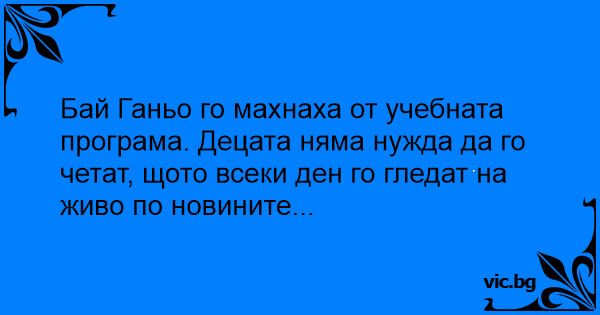Бай Ганьо го махнаха от учебната програма. Децата няма нужда да го четат, щото всеки ден го гледат на живо по новините...