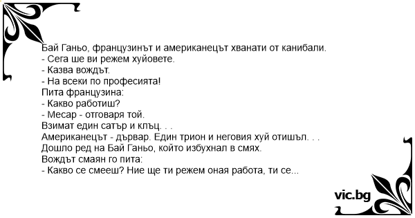 Бай Ганьо, французинът и американецът хванати от канибали.