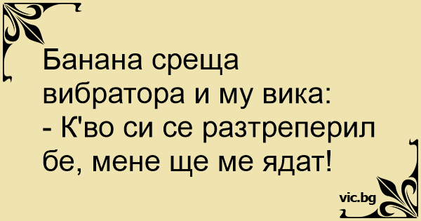 "Hva er det du skjelver så for," sa bananen til vibratoren. "Det er jo meg hun skal spise..."
