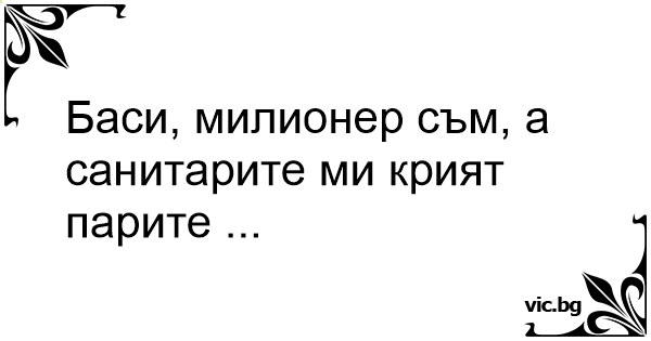 Бacи, милионер съм, а санитарите ми крият парите ...