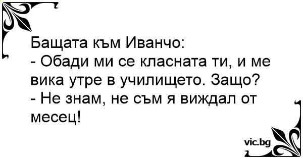 • Вицове от Facebook от нашата страница https://www.facebook.com/www.vic.bg