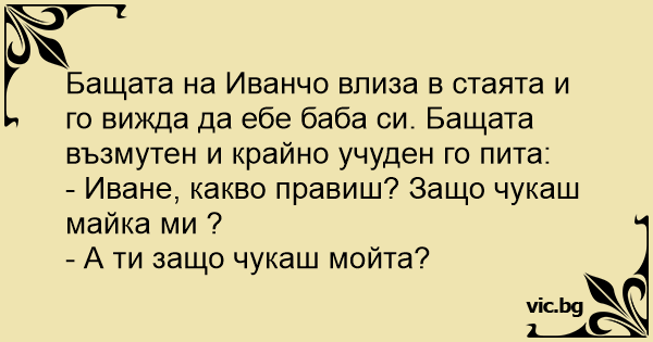 Иванчо ебал баба си в кухнята на масата и в това време влезнал на иванчо баща му и казал: