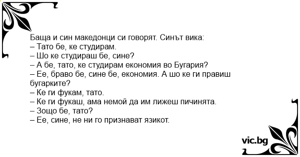 Баща и син македонци си говорят. Синът вика: