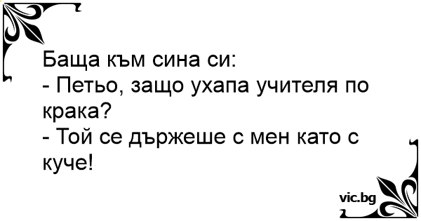 - Петьо, защо ухапа учителя по крака?